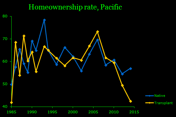 "Transplant" here means someone who's living in an entirely different region than where they grew up, not simply moving from L.A. to San Diego, or from New Jersey to New York. Small-scale migration won't be that destabilizing, but having a large share of your population coming from a different region does not bode well for local stability.
